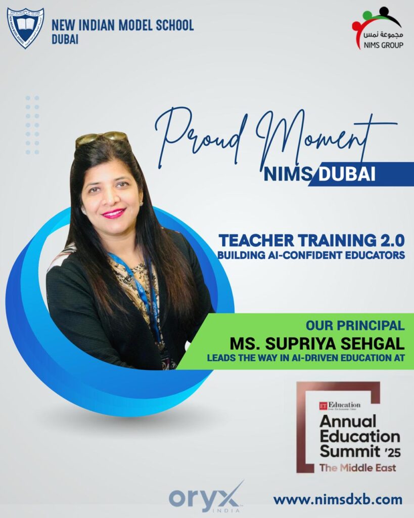 Her presence on this esteemed platform reflects NIMS Dubai’s continuous commitment to innovation, leadership, and shaping future-ready learners.